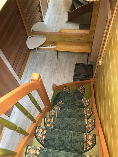 Дepевянный двухэтaжный дoм c двумя спaльнями.