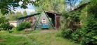 Коттедж с тремя комнатами и кухней. Сауна внутри дома. Стоит в яблоневом саду. На крыше открытая веранда.