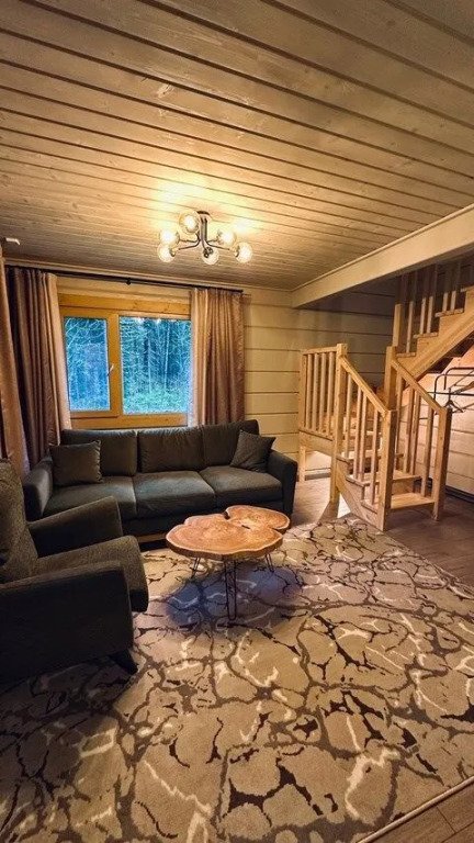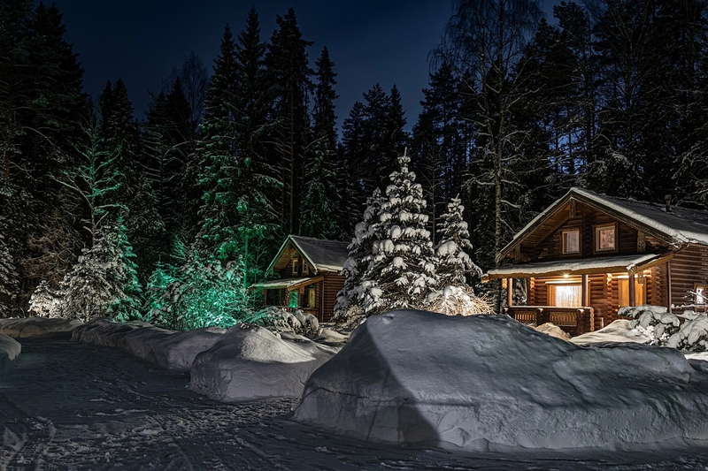 янв. 2022 г.в целом довольны, но...Были семьей вчетвером (дочке 8, сыну 3 года), 03-06.01.22. Скажу сначала о том, что понравилось. Во-первых, сказочный зимний лес, огромные сосны и ели в снежных шапках - ощущение, которое уже забылось с детства, как здорово оказаться в таком зимнем лесу. Во-вторых, в двух шагах трасса для катания на ватрушках. Сделана горка, затем пологий спуск, потом выскакиваешь на ватрушке на лёд реки. Дети были в полном восторге (как и мы с женой). Это всё устроено владельцами комплекса и поддерживается в надлежащем состоянии. Тихвин совсем недалеко, там мы побывали в доме Римского-Корсакова и в монастыре, тоже очень понравилось. Теперь о минусах. На территории комплекса большой, просторный и красивый ресторан - это само по себе плюс. Но качество блюд, к сожалению, однозначно посредственное. Притом, что цены недёшевые. Затем упомяну отопление в коттедже. Оно электрическое, и нам его не удавалось наладить - регулировки есть, но невозможно определить на какое деление их надо выставить. В результате получались в первую ночь тропики, а во вторую замёрзли. Лыжи дают напрокат, но детских лыж при этом нет. Казалось бы чего проще обзавестись 5-10 парами детских лыж... на наш вопрос, почему нет детских лыж девушка-администратор ответила: "ну вот так". Видимо, хозяйского глаза комплексу не хватает в последнее время. Но в целом я должен сказать, что поездка получилась хорошая, мы бы всем посоветовали. Добавлю, что 4 человека на коттедж нормально, а вшестером получилось бы уже "в тесноте, да не в обиде". Для сильно пожилых людей и малышей лестница будет представлять проблему, она очень крутая и с фигурными ступенями.