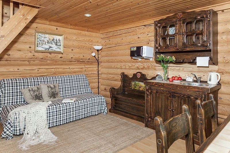 Для отдыхающих на турбазе подготовлены уютные двухэтажные домики из сосновых срубов. Хвойный аромат оказывает положительное влияние на нервную систему. Независимо от времени года, гостей ожидают тишина, живописный пейзаж и чистейший воздух. Летом и осенью Вас непременно порадуют увлекательные прогулки по лесным тропинкам и полянам, которые усеяны грибами и ягодами. На берегу реки Тихвинки обустроен отличный пляж с волейбольной площадкой, мангалами, а также столиками и удобными скамейками для пикников. Все отдыхающие смогут посетить отличную сауну, в которой имеется уютная комната отдыха и бассейн, наполненный целебной артезианской водой из скважины. Утолить голод можно в ресторане, а также Вы сможете сделать заказ еды в номер.