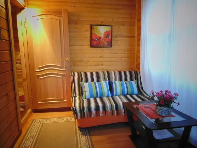 Это уютные апартаменты с отдельным входом. Выполнены в стиле студия. Теплая веранда, на кухне сеть все для приготовления вкусного ужина для всей семьи - газовая плита, микроволновая печь, тостер, холодильник, столовые приборы. Чистая питьевая вода, кулер с горячей и холодной водой. Две двуспальных кровати и одноместный разборный диван.Туалетная комната - душевая кабина, утюг, фен, бесплатные туалетные принадлежности и всегда горячая вода. TV –плазма, WI Fi. Вы найдете здесь все, что нужно для отдыха на любой период.