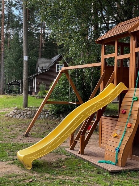 июль 2021 г.Отдых на выходныхХорошая база отдыха, красивые, просторные домики со спальнями на 2м этаже. Дома оборудованы всем необходимым, в том числе и посудой, в целом комфортабельные. На территории есть беседки с мангалами, волейбольная площадка. Администрация отзывчивая и внимательная.