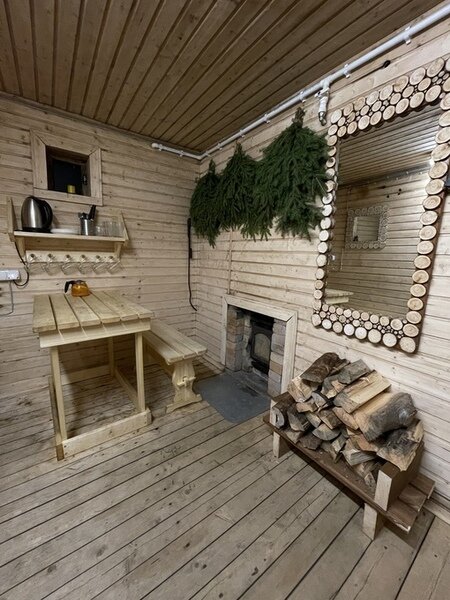 Русская баня на дровах на берегу реки. Вместимость: до 6 человек. Минимальный заказ от 2 часов. Оборудованный спуск в реку Волчья, беседка c BBQ зоной.