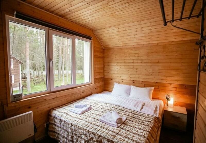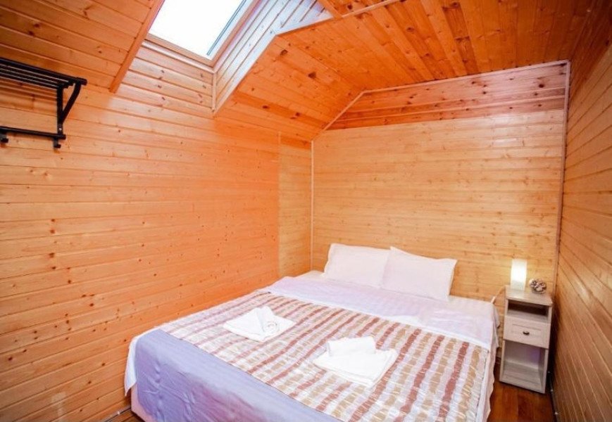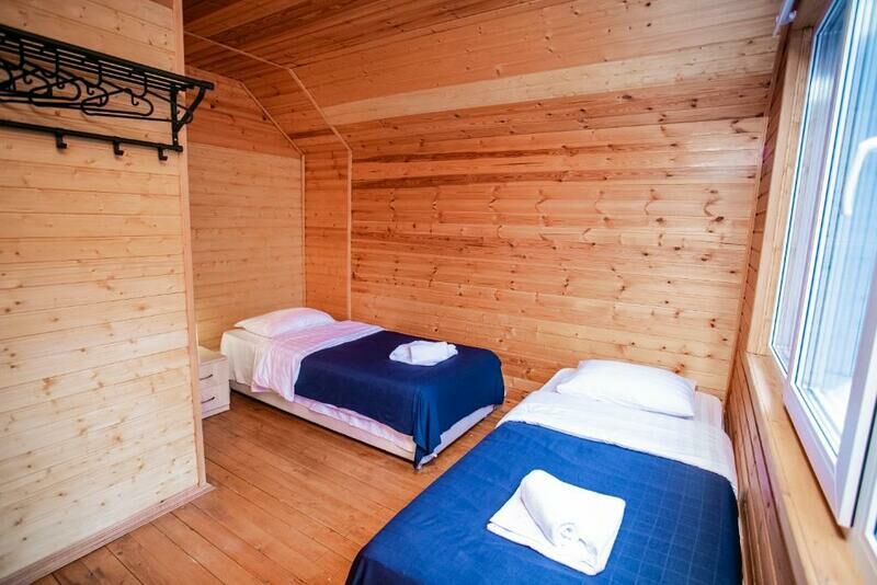 Бронировали домик за месяц, на сайте базы есть удобная он-лайн форма бронирования. При бронировании просили двуспальную кровать — по факту наше пожелание было учтено. На почту сразу пришел ваучер бронирования.