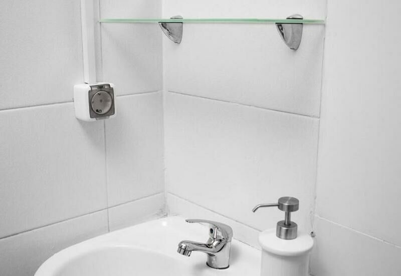 В санузле пол с подогревом, душ с занавеской, унитаз, бойлер и раковина с зеркалом — это небольшое зеркало единственное в доме. Туалетная бумага была приготовлена. Напор в душе шикарный. Горячей воды с избытком, при мытье не надо торопиться, на всех хватает и на посуду тоже. Унитаз был немного шаткий, но не критично. Кран в раковине мега-неудобный — короткий и с плохим напором, поэтому умывались в душе — там кроме душевой насадки есть нормальный кран.