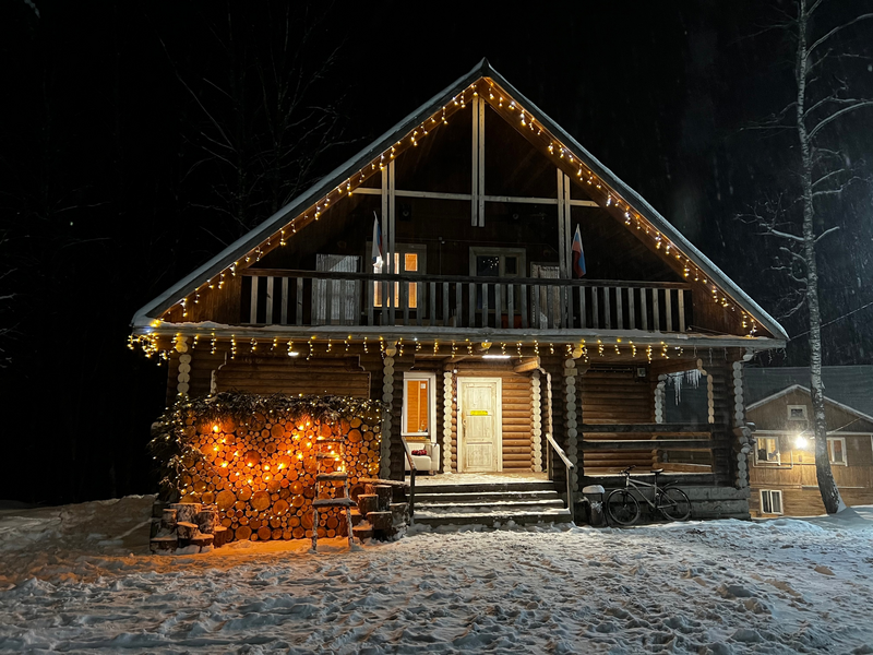 Парковка на территории базы бесплатная, можно оставить машину прямо рядом с домиком.