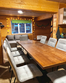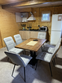 В гостиной зоне большой стол и стулья на 6 человек, угловой диван и телевизор.