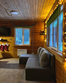 Первый этаж: кухня-гостиная, двуспальный диван, санузел. Санузел и коридор оснащены теплым полом.