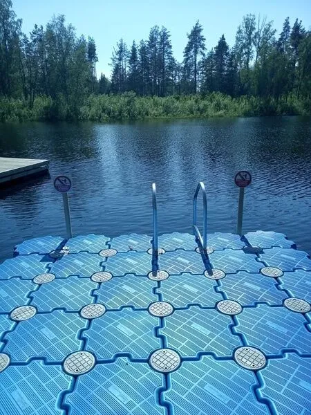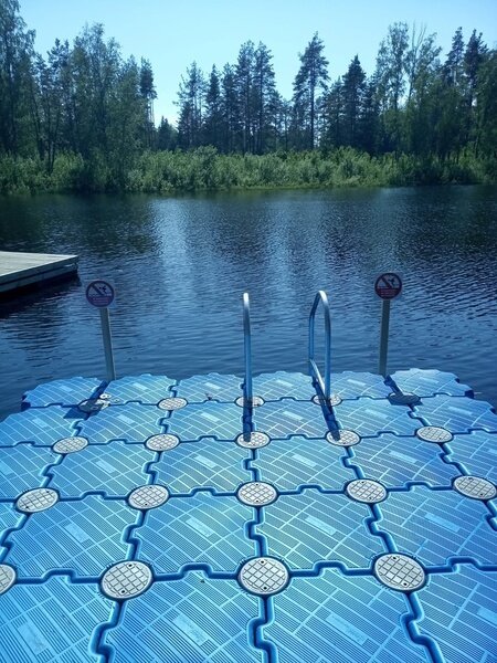 Удобный понтон с трапом, позволит приятно и безопасно сразу оказаться в пяти метрах от берега.