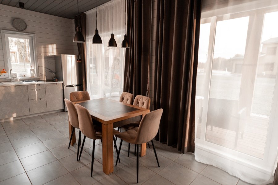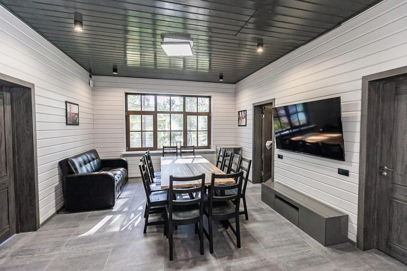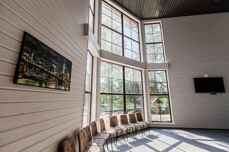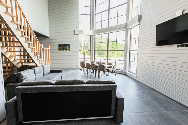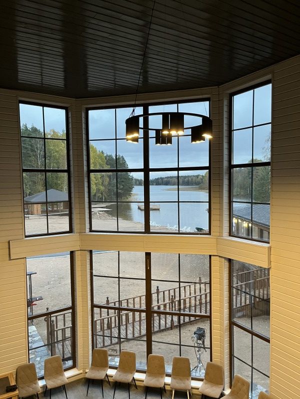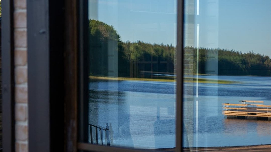 Просторный дом для большой компании. Огромное панорамное окно с потрясающим видом на озеро.