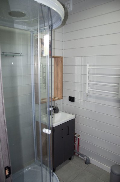 В доме имеется оборудованная кухня с посудой, микроволновка, чайник. Обеденный стол на 6 персон. Спутниковое ТВ и Wi-Fi. три двуспальные кровати, и раскладной диванчик, с возможностью организации ещё двух дополнительных спальных мест. Два санузла. Кондиционер, или тёплый пол, обеспечат комфортную температуру в любое время года.