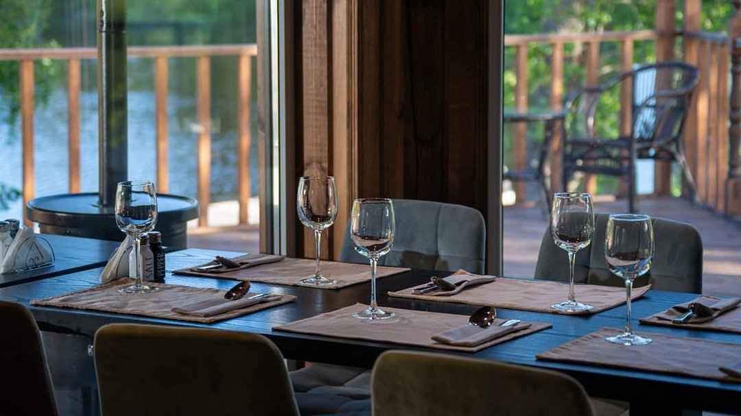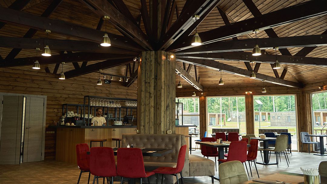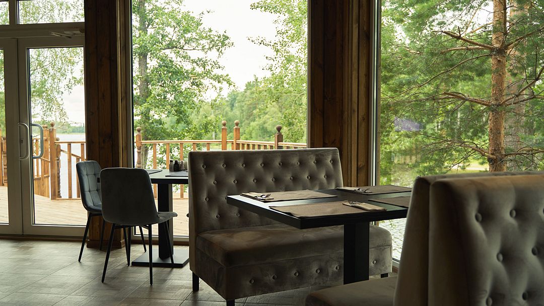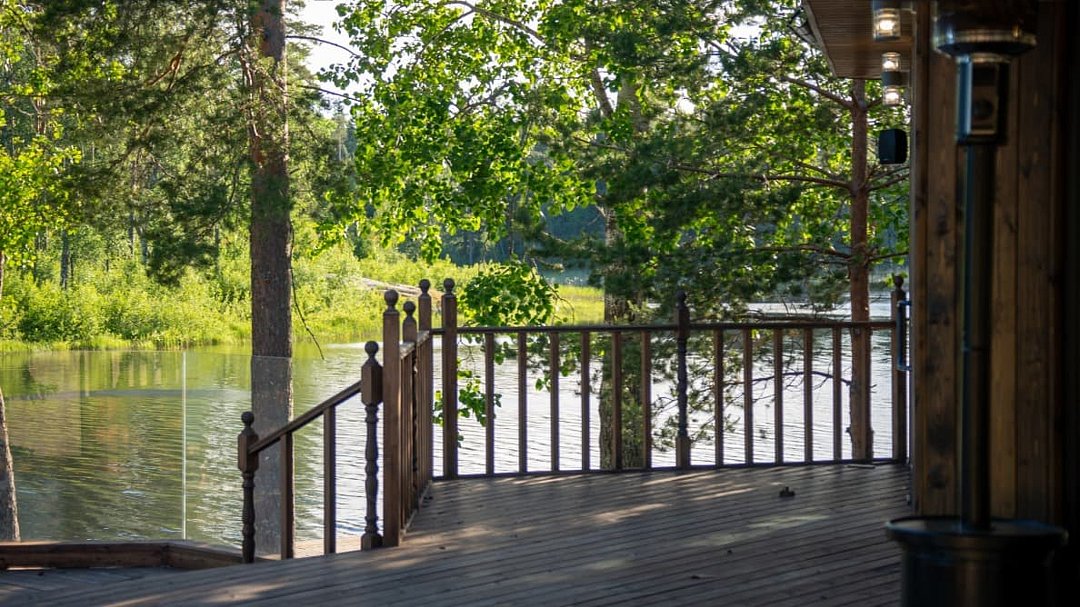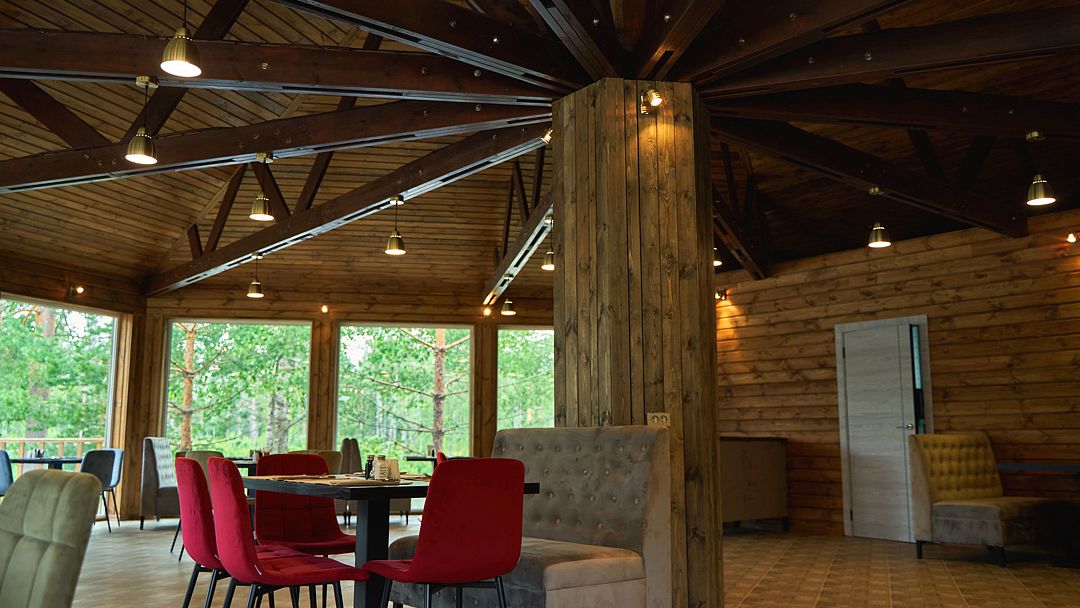 В панорамном ресторане вас ждут блюда местной кухни из свежих продуктов, а после обеда можно расслабиться в русской бане на дровах с ароматерапией и вениками, завершив процедуру освежающим купанием в заливе. Для любителей SPA — чан Фурако и купель с джакузи с видом на озеро.