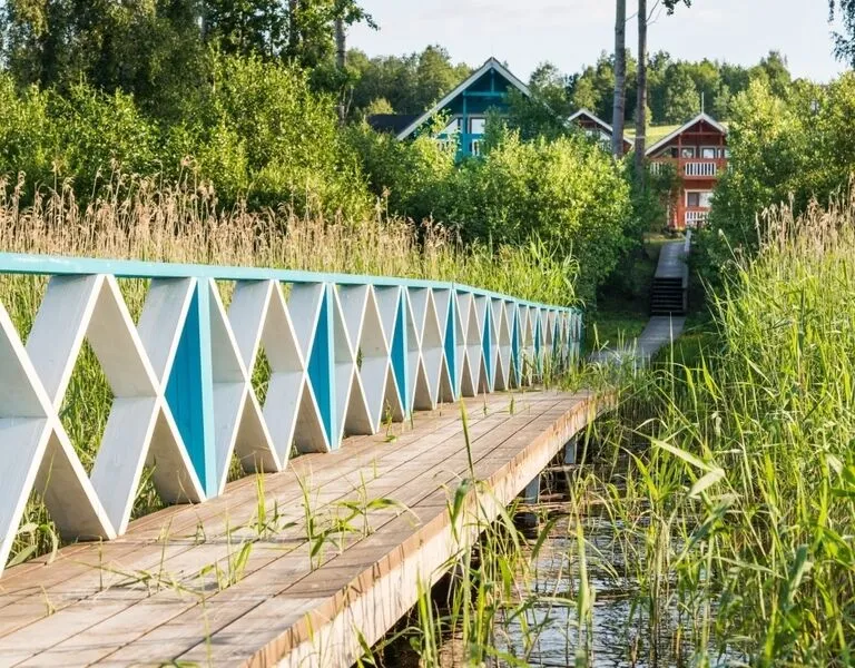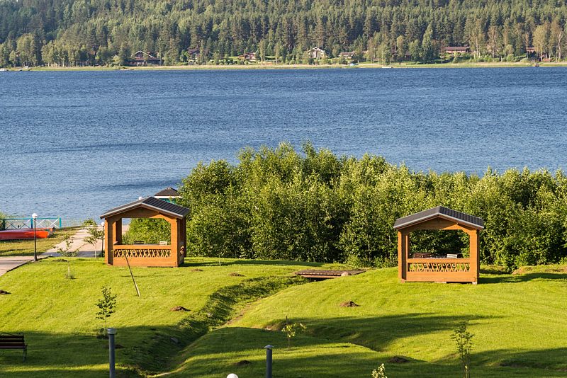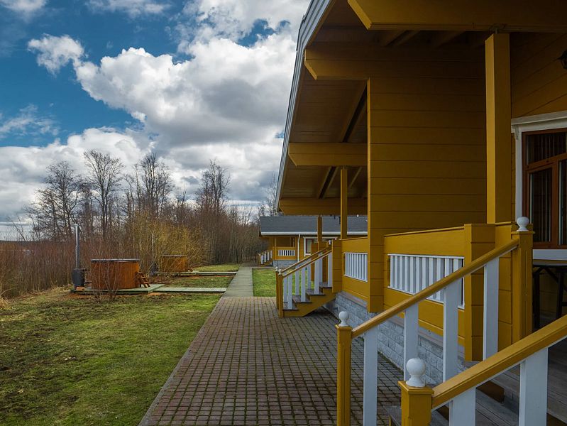 Также здесь вас ждет активный отдых круглый год. Летом — прогулки по лесу, сбор грибов и ягод, зимой — катание на лыжах и финских санках.