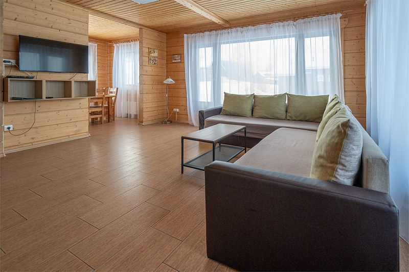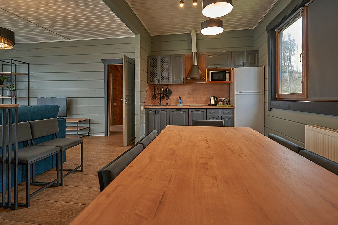 В каждом коттедже обустроена собственная кухня, чтобы гости имели возможность приготовить свои любимые блюда. А в некоторых коттеджах имеется сауна.