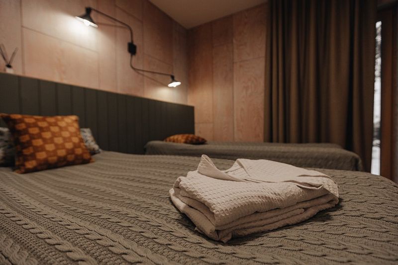 Для проживающих предоставляются: халаты, тапочки, полотенца, постельное белье, косметические средства, шапочки для душа, фен.