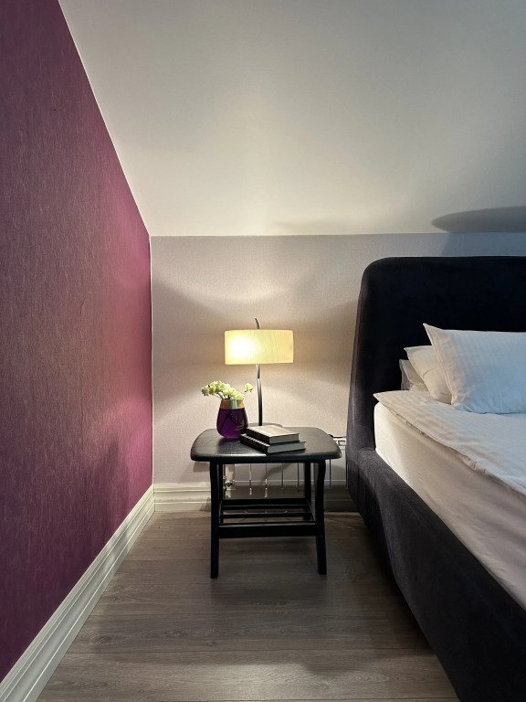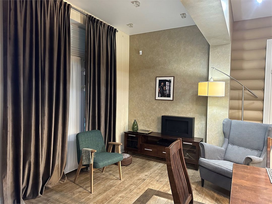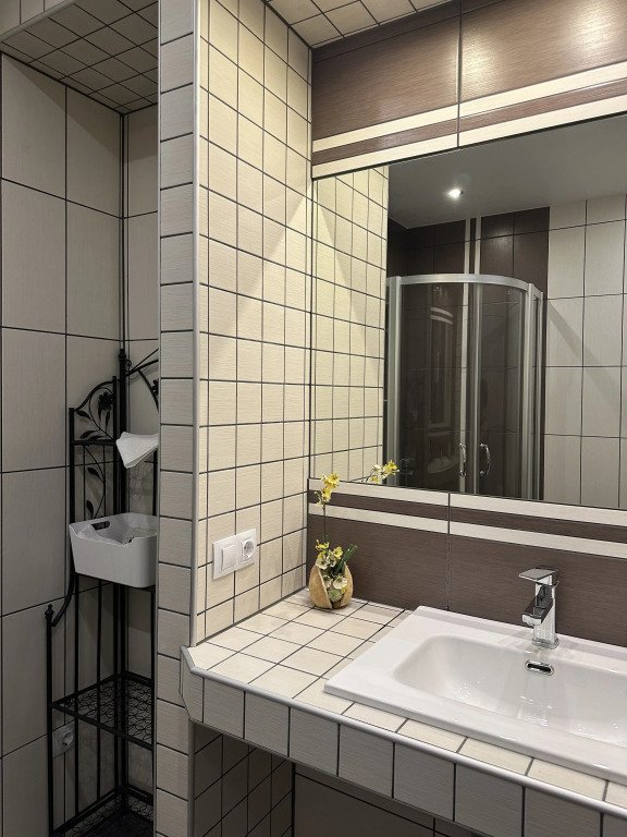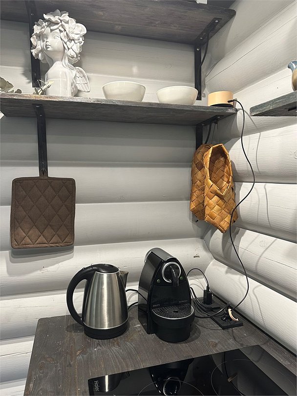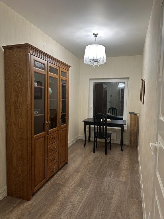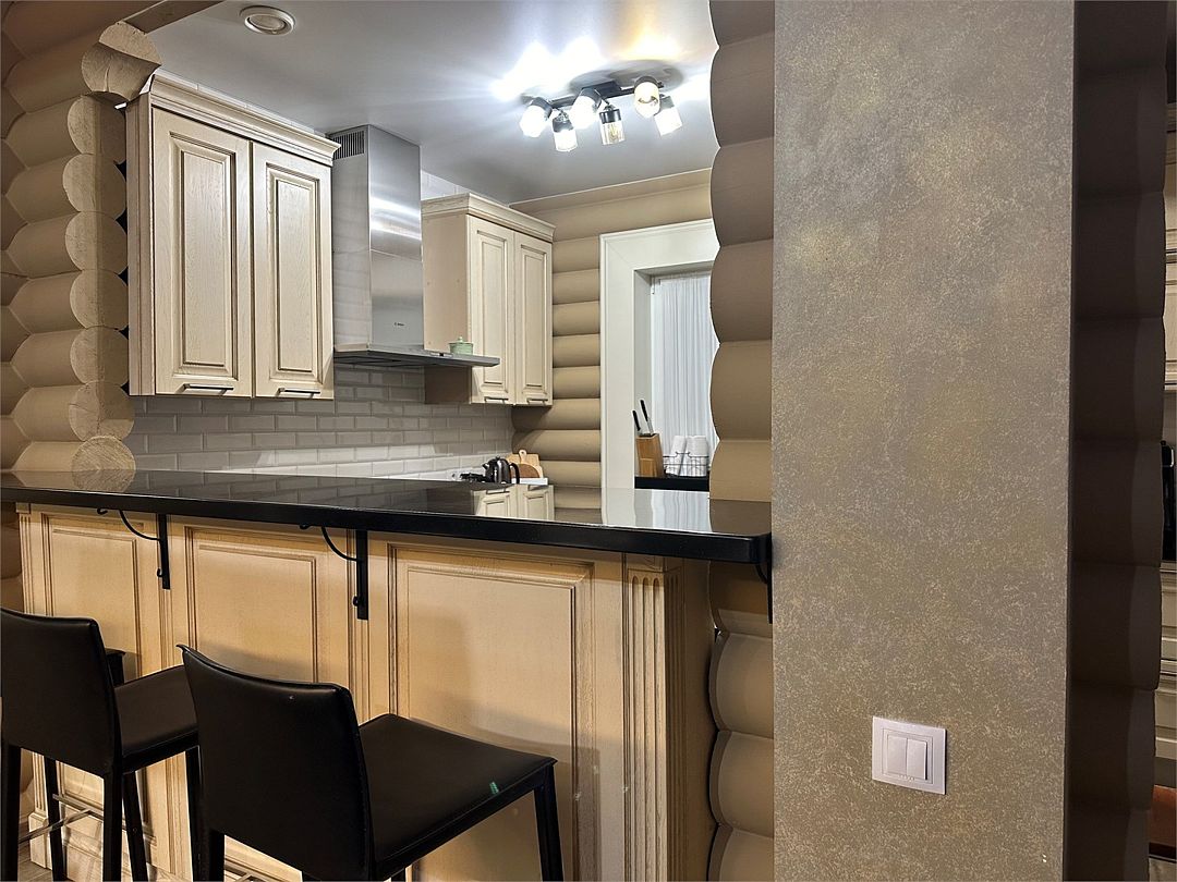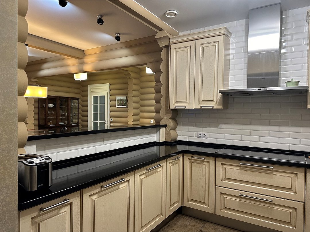 - Кухня: холодильник, морозильная камера, фильтр для воды, варочная поверхность, СВЧ, вытяжка, кофемашина, посуда для приготовления пищи и сервировки стола 6 персон;