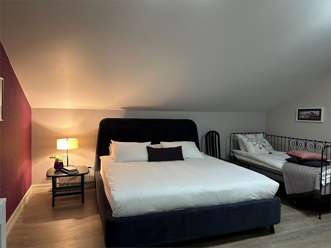 - Спальня: 1 кровать 180 см или (2 - 3) отельные кровать 90см;