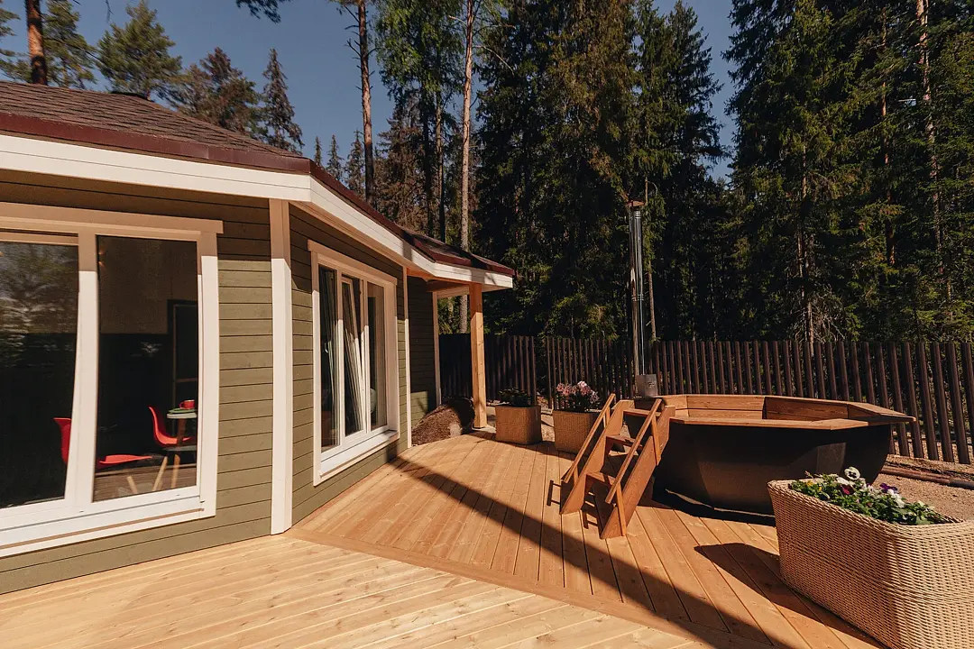 На террасе горячая купель с джакузи (за дополнительную плату)