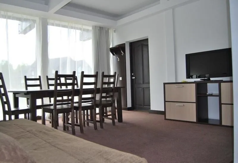 В каждом номере отдельный душ, туалет, плазменный ТВ + кабельное ТВ, минихолодильник + мини-бар (по желанию), охраняемая парковка. Все коттеджи соединяет терраса.