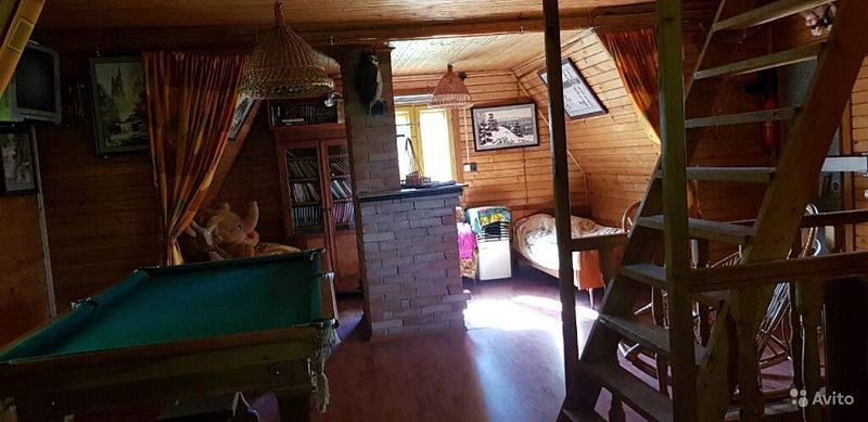 На первом этаже располагаются гостиная, спальня и ванная комната. На втором этаже большой бильярд, кресло-качалка, балкон, спальные места, разделённые на 2 спальни.