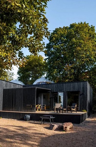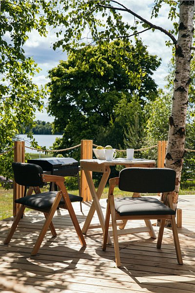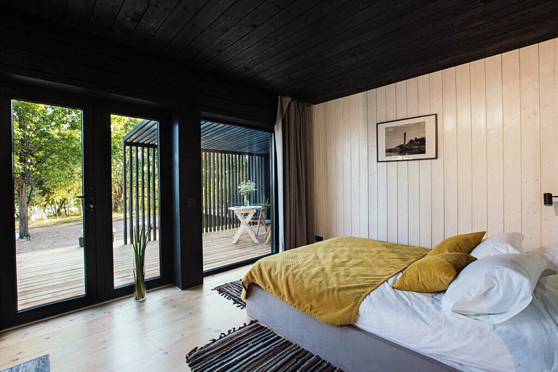 В доме есть комфортная двуспальная кровать, кухня с плитой, двухместный диван в обеденной зоне и современный санузел с необходимыми туалетными принадлежностями и полотенцами, а на террасе шезлонги и зона для барбекю.