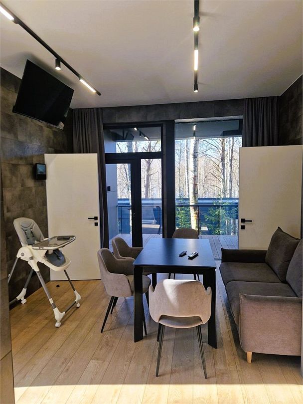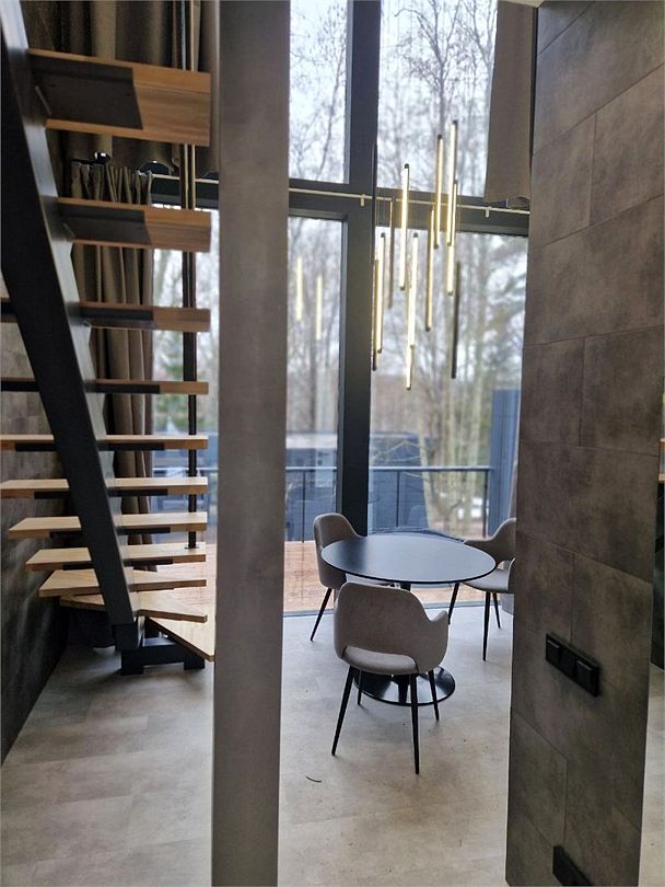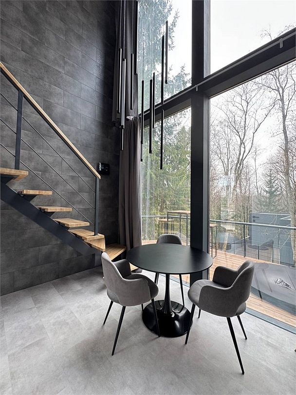 • Панорамные окна 2,7 м. с видом на лес;