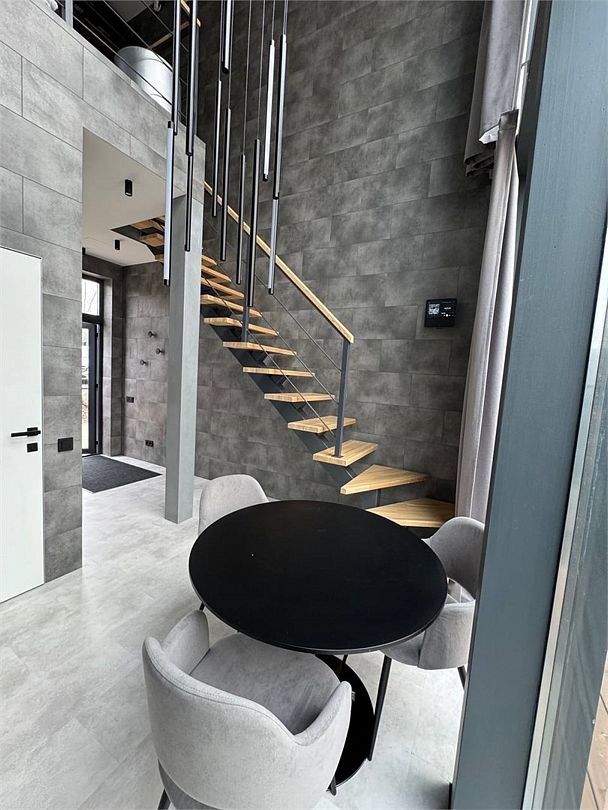 Двухэтажная вилла Стандарт 2+0 с панорамными окнами, собственной всепогодной купелью, мангалом и общей костровой зоной.