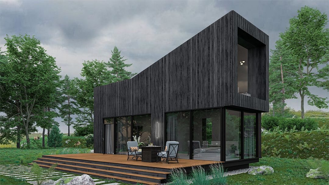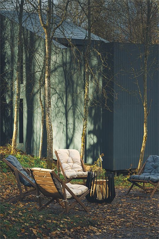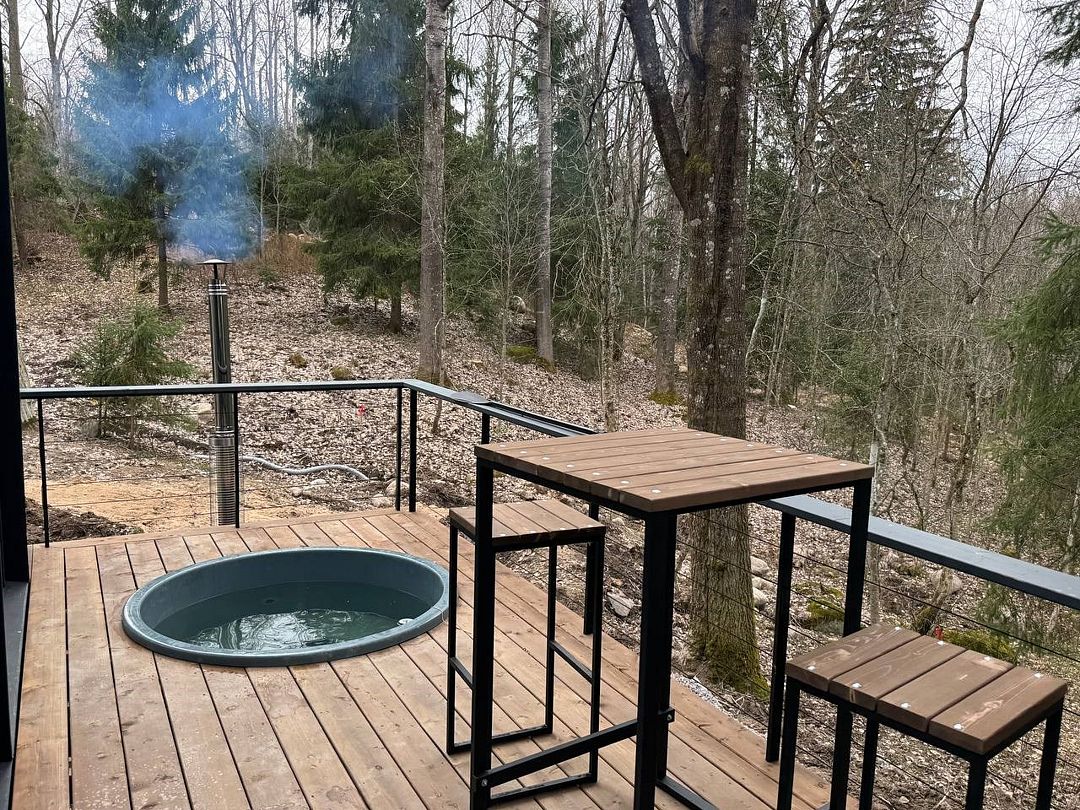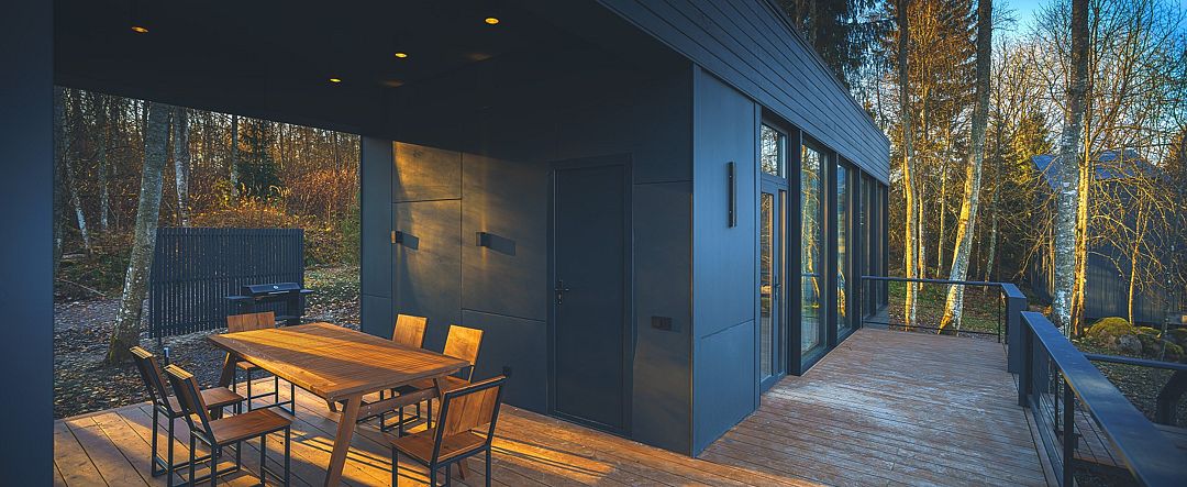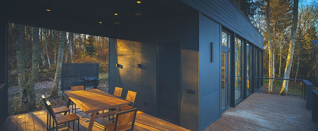 Одноэтажная вилла Делюкс 2+2 с панорамными окнами, террасой, собственной всепогодной купелью, мангалом и собственной костровой зоной.