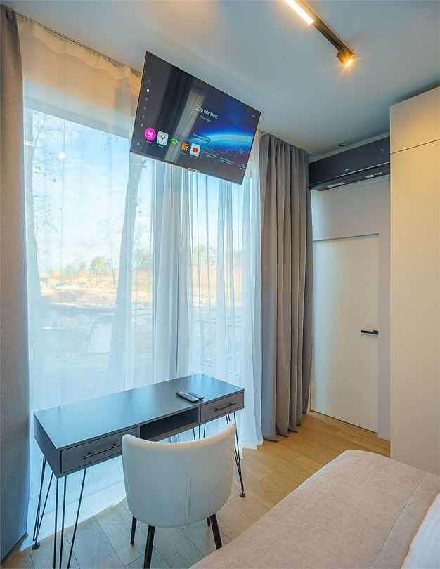 • Оборудованная кухня с обеденной зоной: чайник, капсульная кофемашина, холодильник, плита, посудомоечная машина, микроволновая печь;
