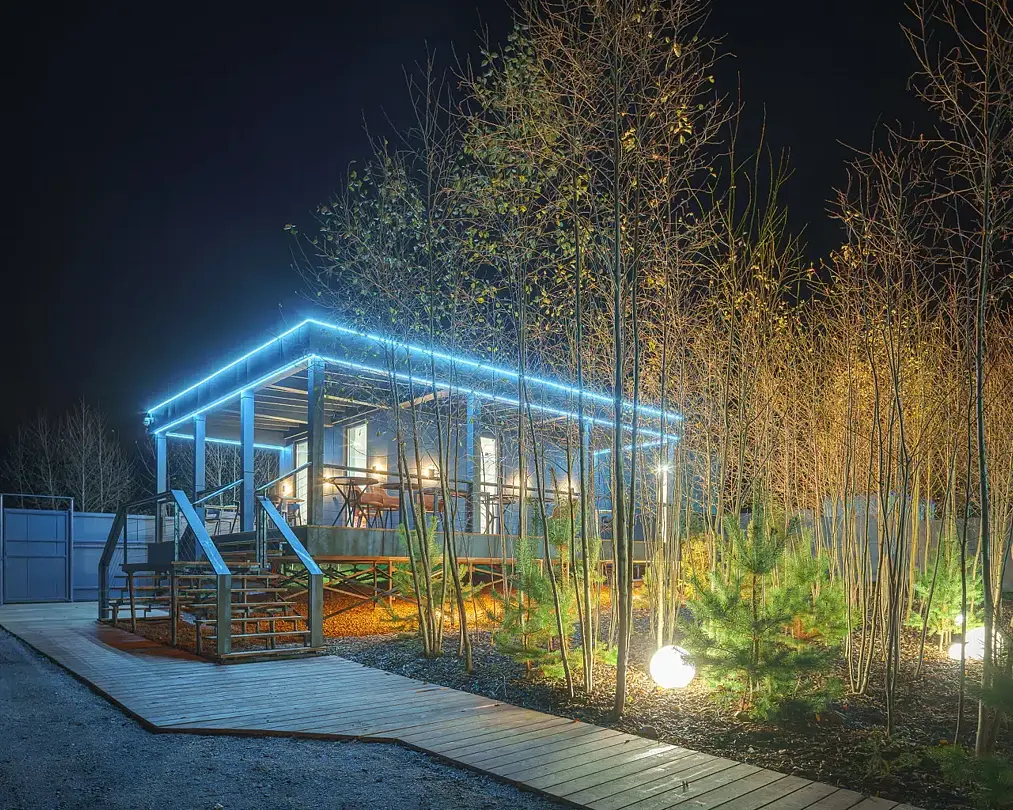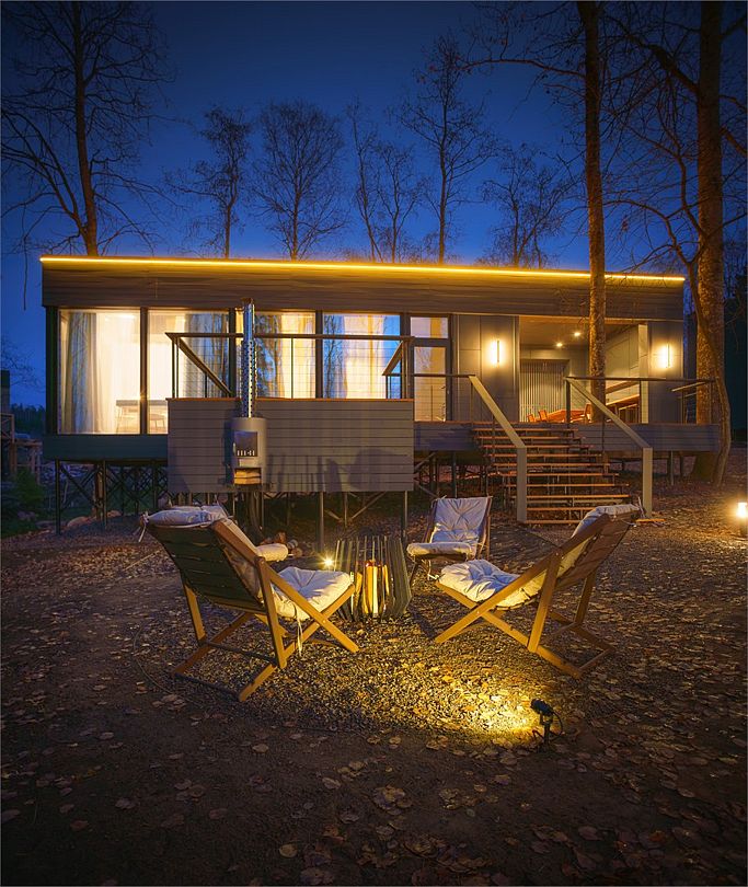 Панорамные окна открывают захватывающие виды на лес и озеро, позволяя гостям наслаждаться природой в любое время суток. Для любителей кулинарных экспериментов оборудованы мангальные зоны, летние кухни и костровые площадки. Купели с подогревом превращают каждое мгновение в изысканную спа-церемонию, где душа находит покой, а тело — обновление и силу.