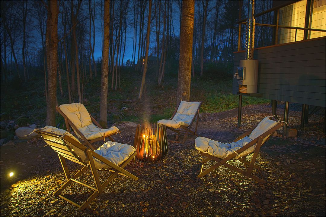 - Костровая зона: дрова, лежаки, костровая чаша;