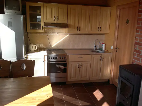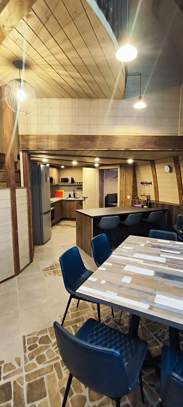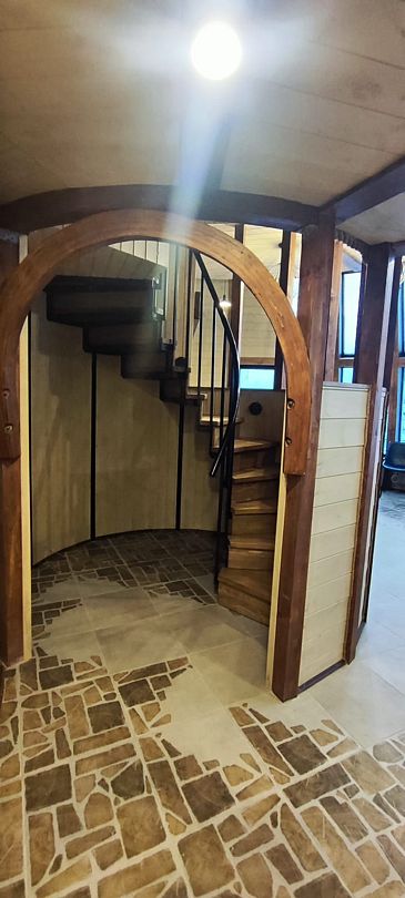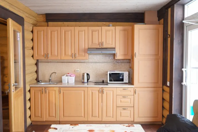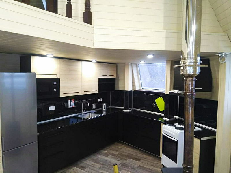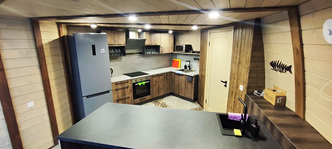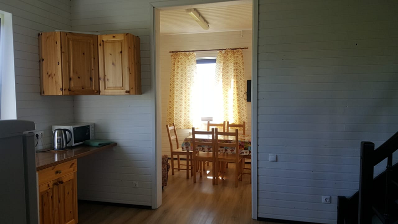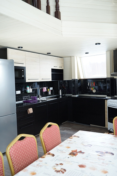 1 этаж — столовая, полностью оборудованная кухня, санузел с душевой кабиной, русская баня.