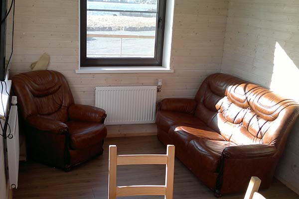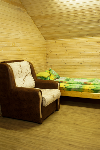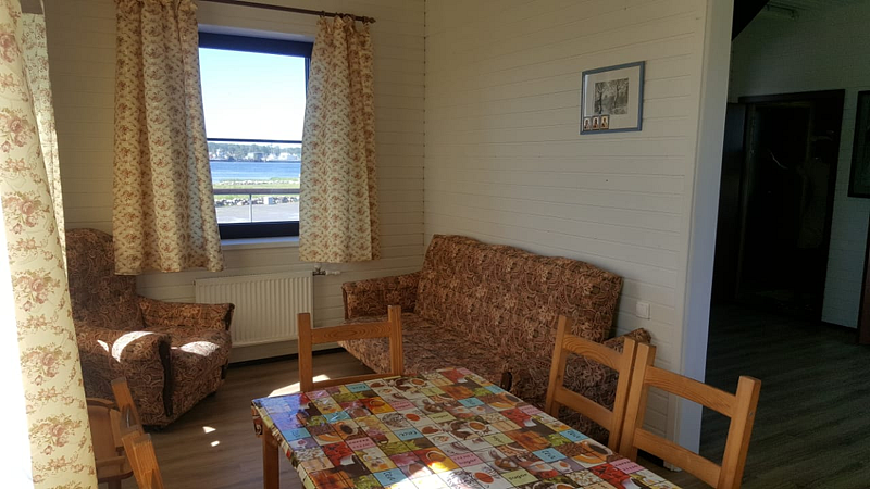 Двухэтажный коттедж площадью 75 кв.м , крытая веранда с садовой мебелью 1 этаж — гостиная-столовая с камином, спутниковое TV, полностью оборудованная кухня, санузел с душевой кабиной, раскладной диван 2 этаж — две двухместные спальни (две одноместные кровати и двухместная кровать).