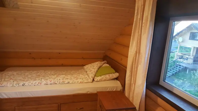 2 этаж — две двухместные спальни (по две одноместных кровати ), санузел с душевой кабиной.