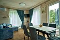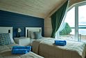 Двухэтажный коттедж с двумя спальнями и полноценной кухней на первом этаже, с видом на озеро и с большой террасой с выходом из кухни.