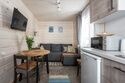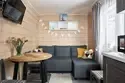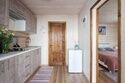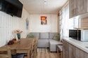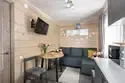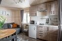 • Кухня-гостиная: двуспальный диван, телевизор, холодильник, газовая варочная поверхность, микроволновая печь, электрический чайник, гейзерная кофеварка, набор посуды для приготовления еды, набор посуды для сервировки на 4 человека, стол, стулья.