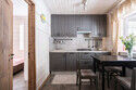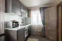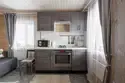 - Кухня: холодильник, посудомоечная машина, газовая плита, микроволновая печь, электрический чайник, набор посуды для приготовления еды, набор посуды для сервировки на 6 человек, стол, стулья.