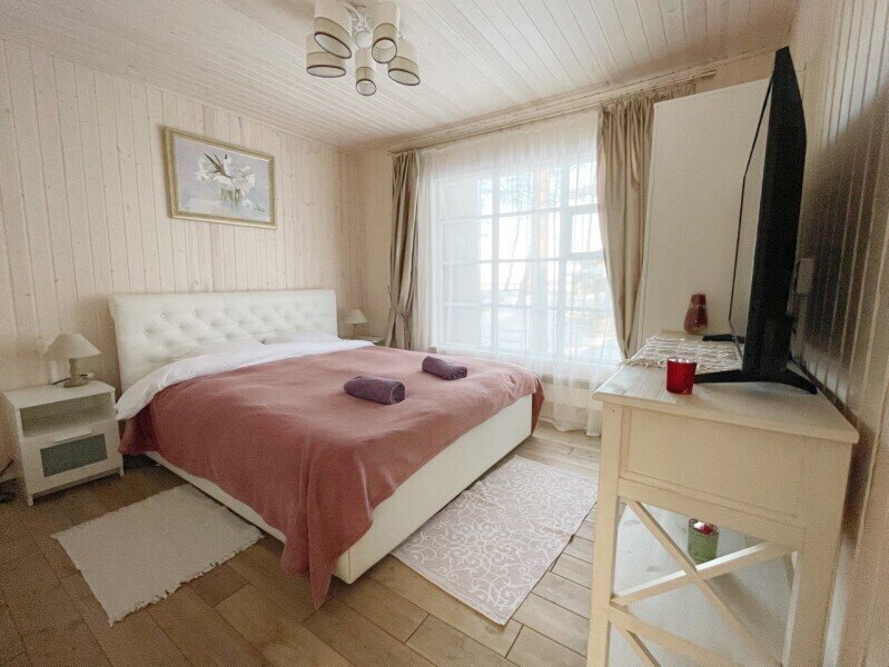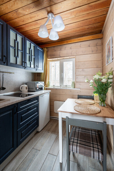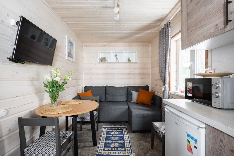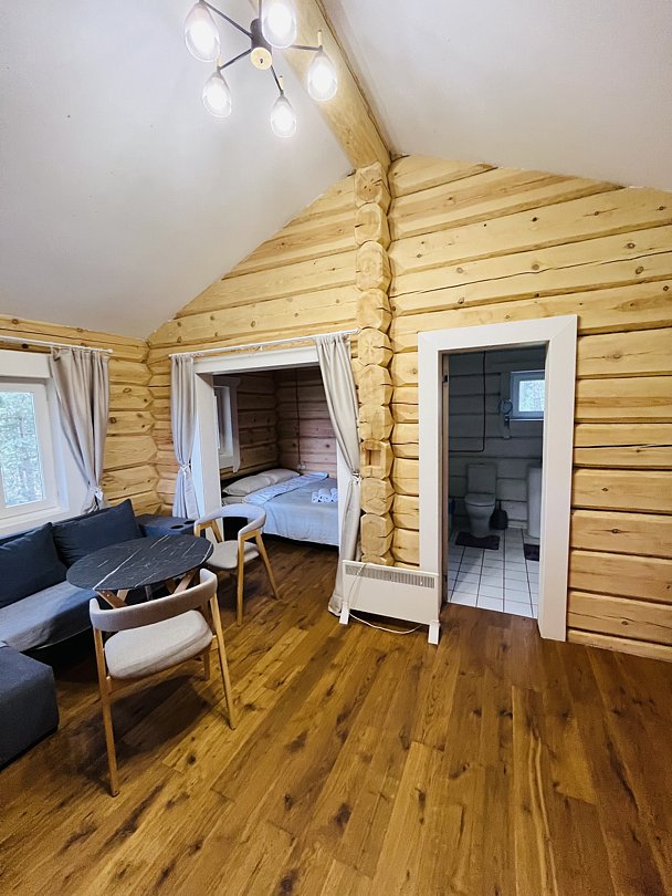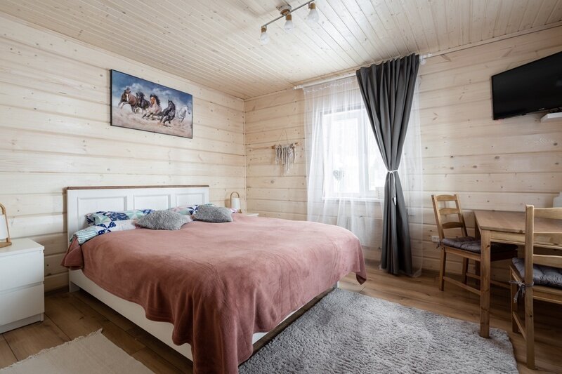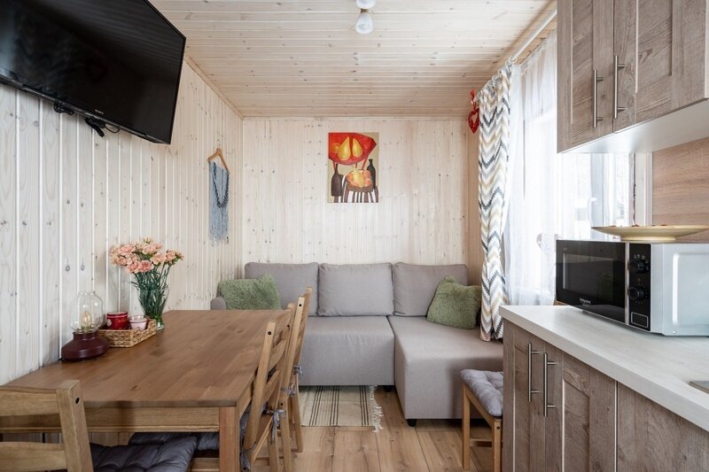 Уютный деревянный дом готов вместить 5 гостей. Дом идеально подойдет для аренды семьёй или большой компанией, желающей провести время на свежем воздухе в домашней атмосфере.