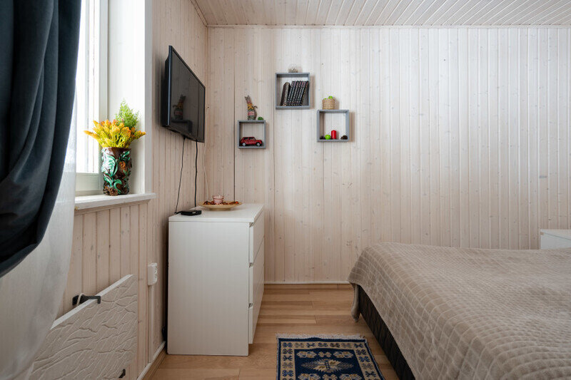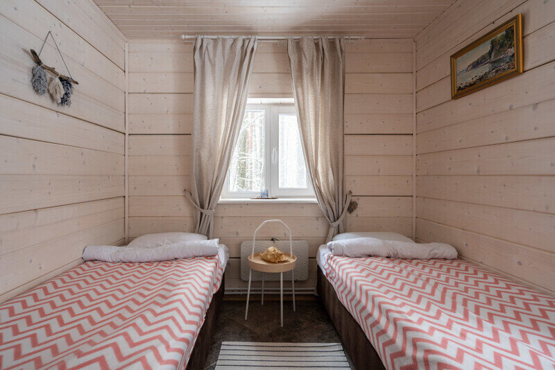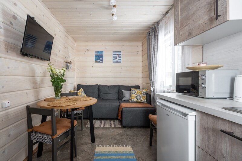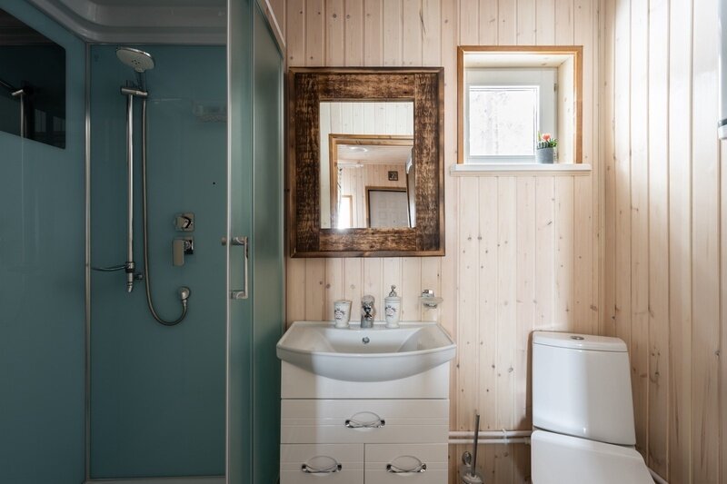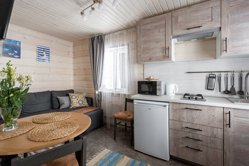 Двухместный дом с видом на Финский залив построен 30 декабря 2021 года. К услугам гостей уютная спальня с двуспальной кроватью, небольшая кухонная зона и санузел с душевой кабиной. Дом оборудован всем необходимым и удобен настолько, что гости часто бронируют его не на пару дней, а на всю неделю вперед.