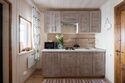 - Кухня: холодильник, газовая панель, микроволновая печь, электрический чайник, набор посуды для приготовления еды, стол, стулья и диван.