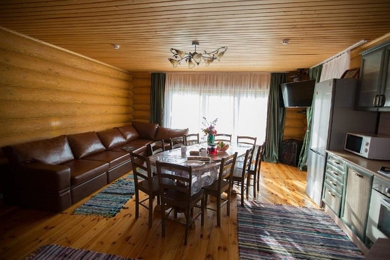 Уютный бревенчатый дом, расположенный в живописных местах, где вы растворитесь среди местных красот и проведете незабываемый отдых под расслабляющие звуки природы, перед вами откроются чудесные лесные пейзажи, прозрачная речка, протекающая прямо возле дома, а его комфортное оснащение сделает ваш отдых еще приятнее и разнообразнее.В доме всё продуманно для безопасного и комфортного отдыха, для детей есть детский уголок и площадка, для взрослых аэрохоккей.