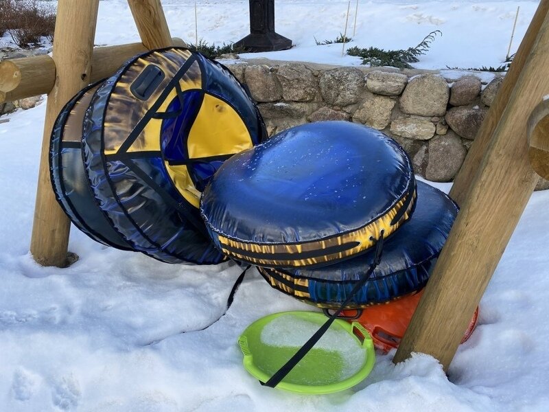 - С тюбингом и ватрушками