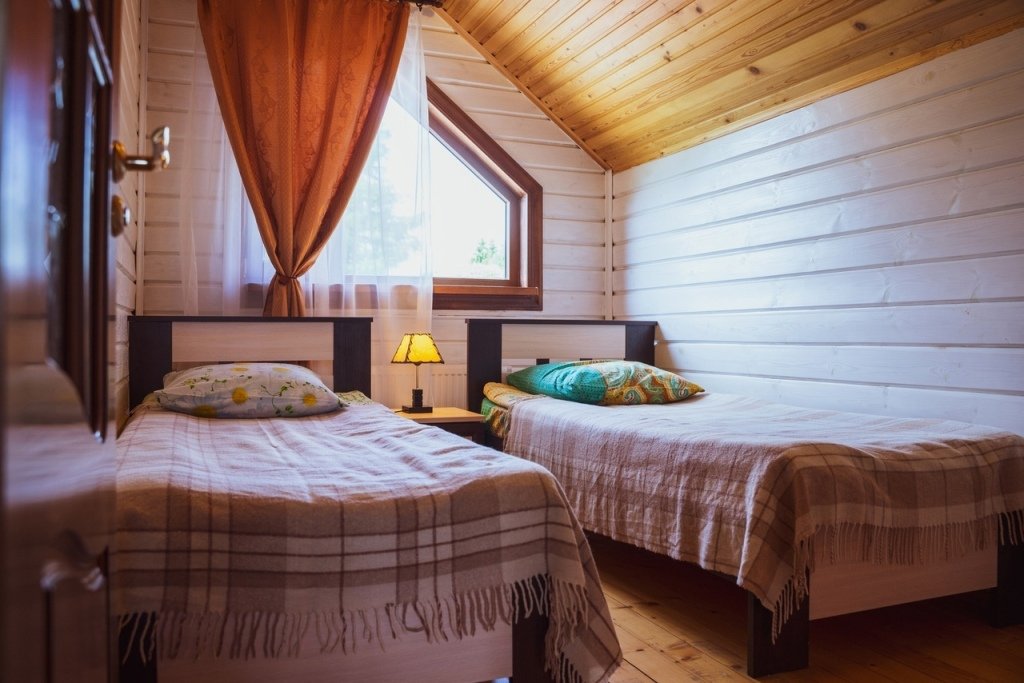 Коттедж рассчитан на комфортное размещение 10 гостей, возможно размещение до 14 человек. Предоставляются постельное бельё и два полотенца на каждого гостя, а также уборка включена в