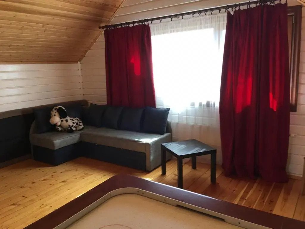 На первом этаже дома кухня-гостиная с угловым раскладным диваном, большой стол, стулья, спутниковое ТВ, высокоскоростной Wi-Fi, караоке, музыкальный центр, есть детский стульчик для кормления ребенка. Кухонная зона полностью оборудована: холодильник, газовая плита, СВЧ печь, чайник, посудомоечная машина, духовой шкаф, соковыжималка, вся необходимая посуда для приготовления и сервировки блюд. Специально оборудован детский уголок с игрушками и тёплым полом. В распоряжении гостей 2 спальные комнаты с двуспальными кроватями, в одной из спален детская кроватка.