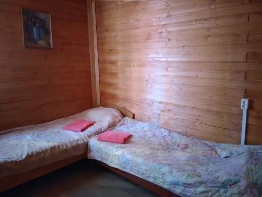 Коттедж двухэтажный, что позволяет разграничить пространство для отдыха. В доме располагаются 5 односпальных кровати (их можно сдвинуть) и одна двуспальная - это располагается в двух спальнях, на первом этаже общая комната, куда, при желании, можно поставить ещё три- четыре кровать, что позволяет увеличить количество гостей.