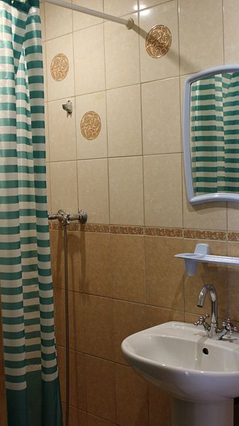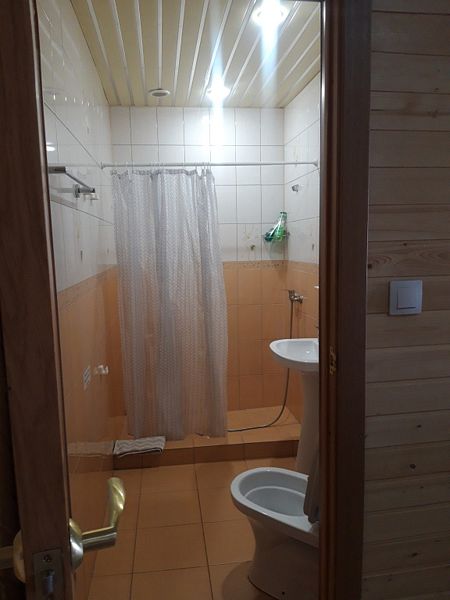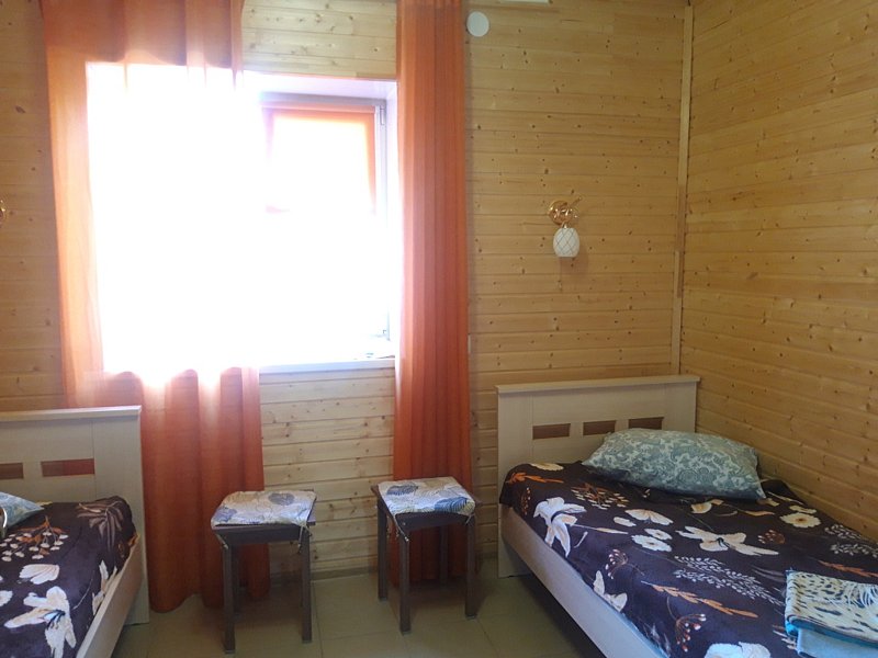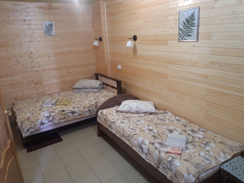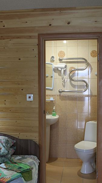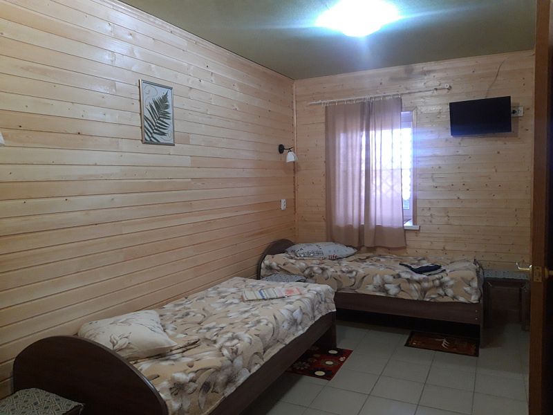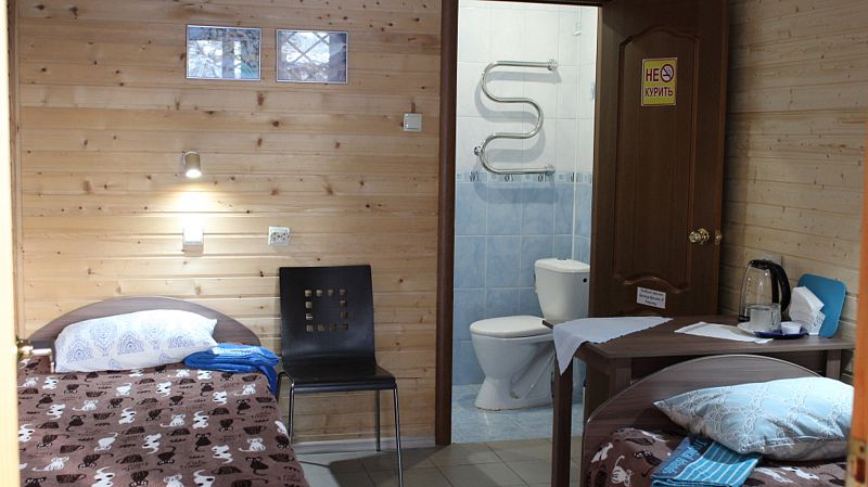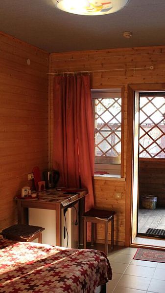 В номере площадью 13 кв.м одна двуспальная кровать, полноценный санузел с душем и горячей водой, телевизор, холодильник, электрочайник. Во всем номере подогреваемые полы. Выход из номера на террасу (кроме номера 1). Рядом с террасой есть крытый мангал. Есть возможность поставить в номере дополнительно раскладушку или детскую кроватку ( 500 ₽/ сутки).