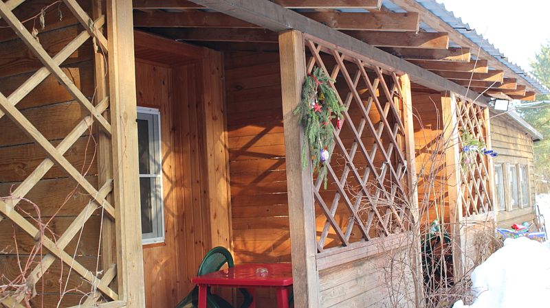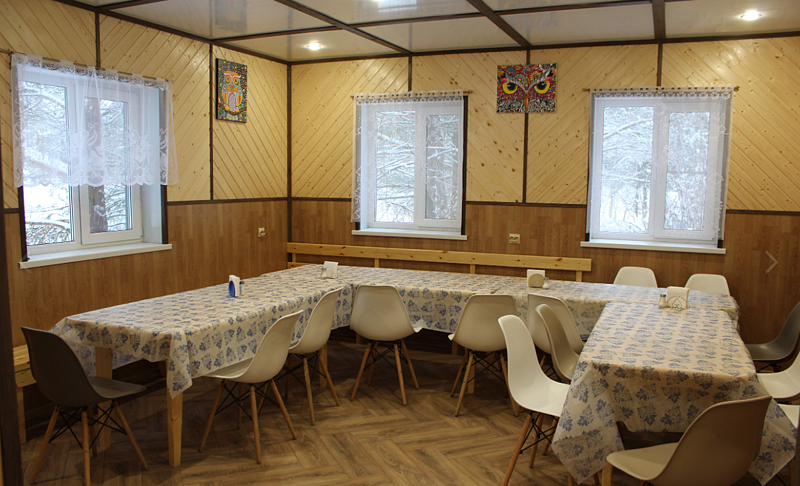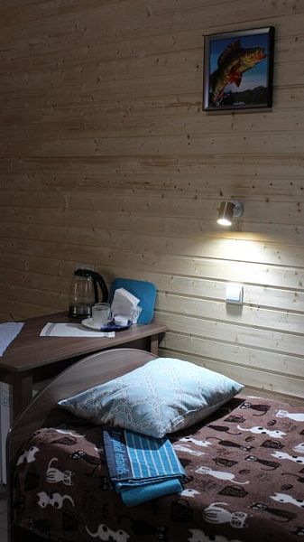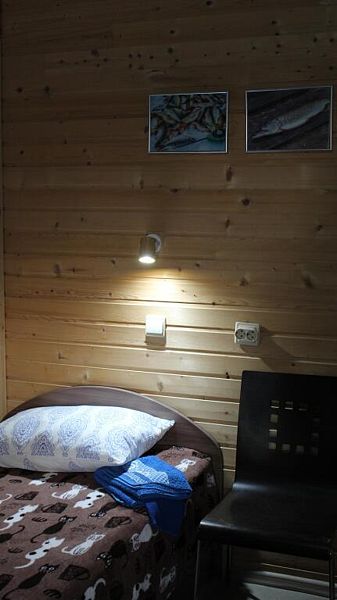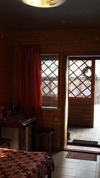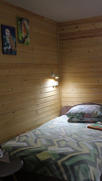 В номере санузел с душем, чайник, холодильник, стол, стулья, шкаф. Отдельный выход из номера ведёт на общую кухню и в помещения сауны. Перед входом в номере свой мангал под навесом и терраса.
