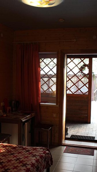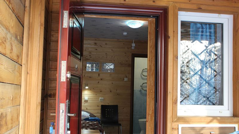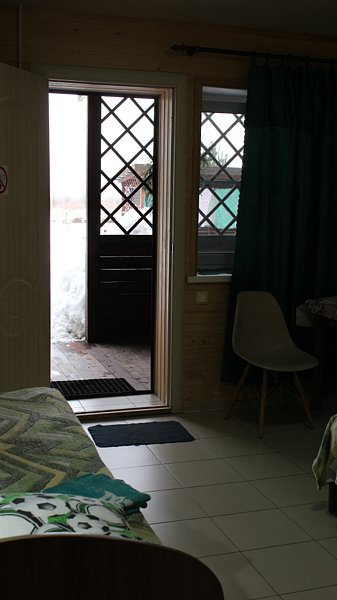 В этом уютном помещении размещены две отдельные односпальные кровати. Есть тв, электрочайник, холодильник. У каждого изголовья своё индивидуальное освещение. Полы во всём номере подогреваемые и регулируются термостатом. Санузел с душем и горячей водой - в номере. На террасе у входа в номер можно расположиться за столом в тёплую погоду.