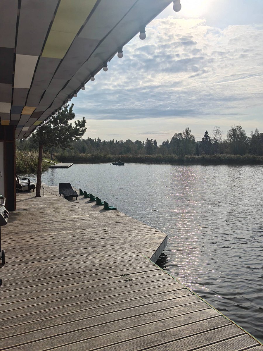Семейный отдыхДостоинстваОчень аутентичное, уютное место. Прокат лодок и сапов, баня, купель у одо рыбалка, продуманная планировка в домике, чистота, есть всё, включая блюда для сервировки стола, штопор, стопки, хороший холодильник, пакеты для льда и др. Шикарнейший вид из окна каждой комнаты, витражные окна в пол.