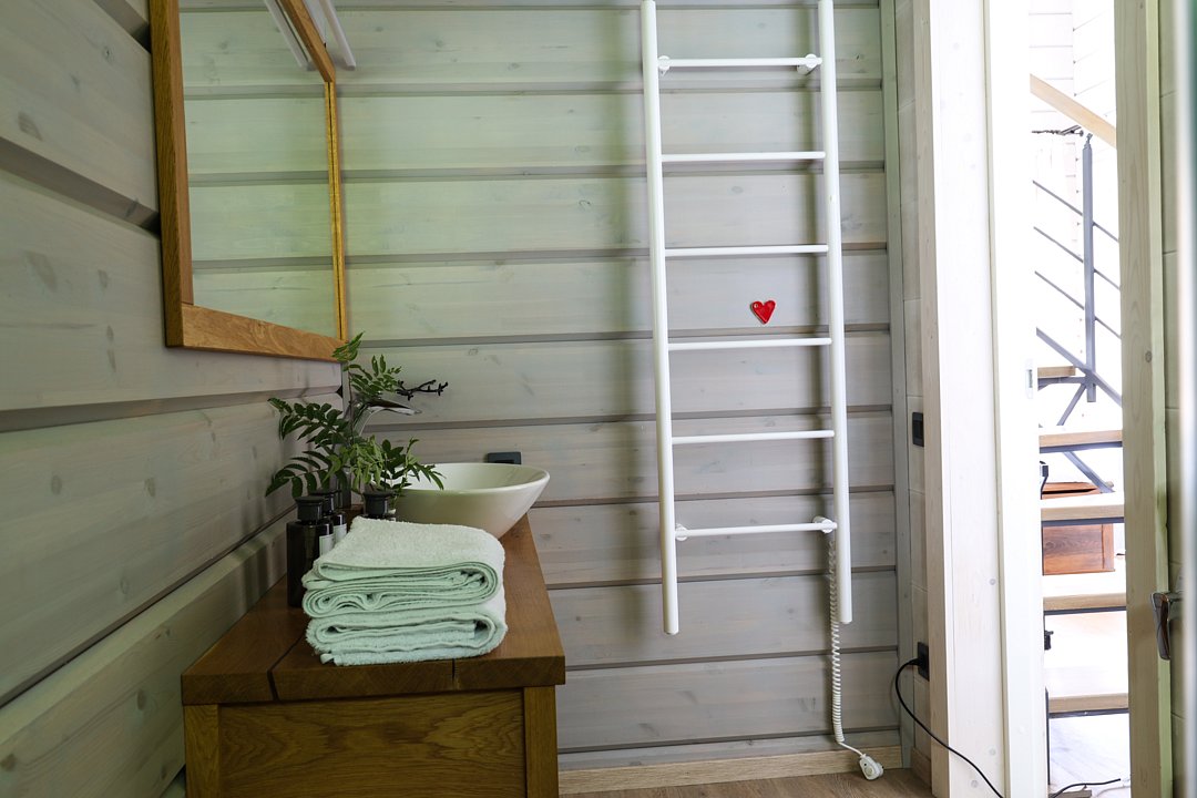 Скандинавский стиль, природные цветовые решения и теплый свет панорамных окон создают атмосферу покоя и единения с природой. Внутри дома предусмотрена добротная мебель и современная техника, а также используются экологичные материалы и аксессуары. Имеется вся необходимая посуда, чистое белье и полотенца, а также доступ к Wi-Fi.
